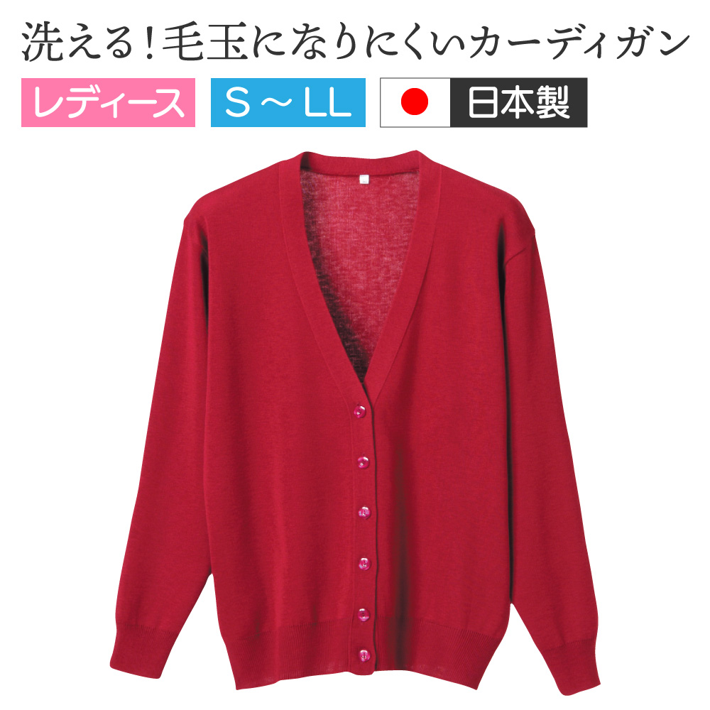 D-PHASE 抗ピル長袖カーディガン D-1001 エンジ S〜LL メーカー直送 レディース 日本製 春 ビジネス オシャレ 洗える プレゼント 母の日 毛玉防止