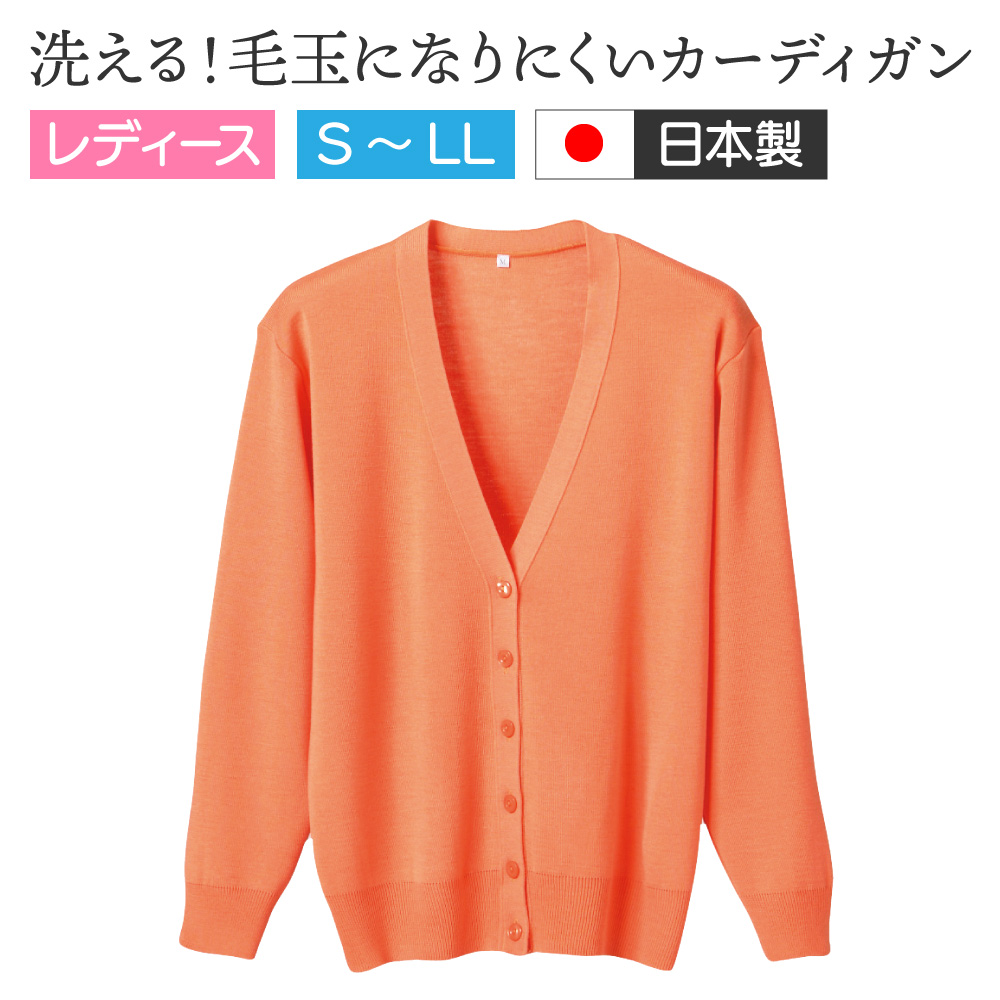 D-PHASE 抗ピル長袖カーディガン D-1001 オレンジ S〜LL メーカー直送 レディース 日本製 春 ビジネス オシャレ 洗える プレゼント 母の日 毛玉防止
