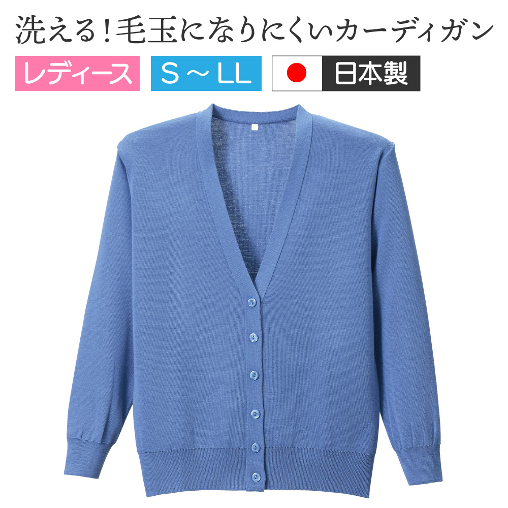 D-PHASE 抗ピル長袖カーディガン D-1001 サックスブルー S〜LL メーカー直送 レディース 日本製 春 ビジネス オシャレ 洗える プレゼント 母の日 毛玉防止