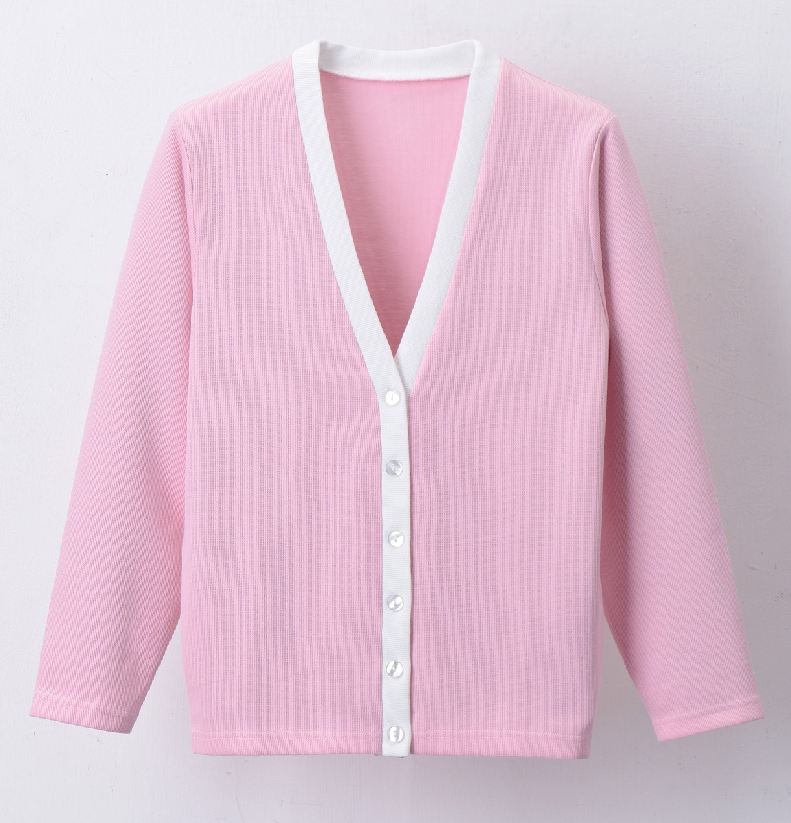 D-PHASE Vネックカーディガン C-04 ピンク×ホワイトS〜3L (メーカー直送)