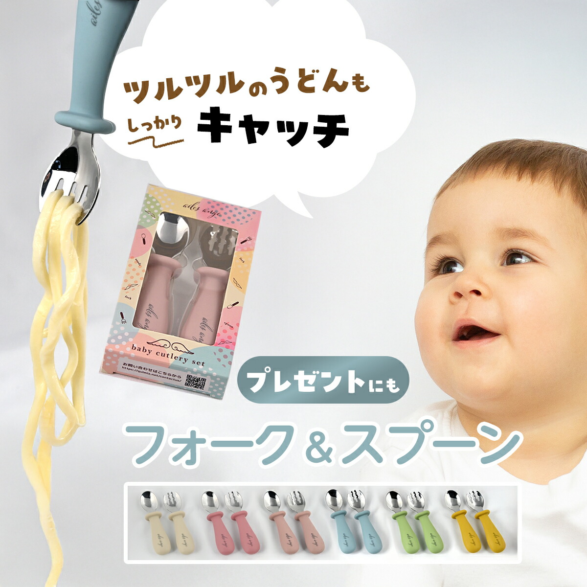 初めてのスプーンとフォークの練習用としてぴったり。安心安全な素材とデザインで、出産祝いやプレゼントにぴったり!