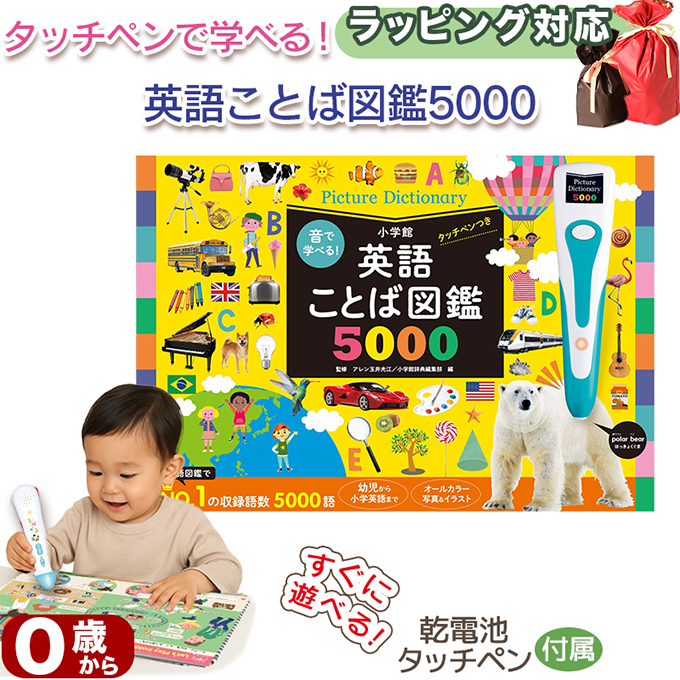 はじめての英語から本格英語学習まで、これ1冊で5000語の英単語が学べる英語図鑑の決定版!めくりやすいソフトカバーの本とネイティブスピーカーの発音を耳から学べるタッチペンがセットに。音声は英語と日本語に切り替えられます。