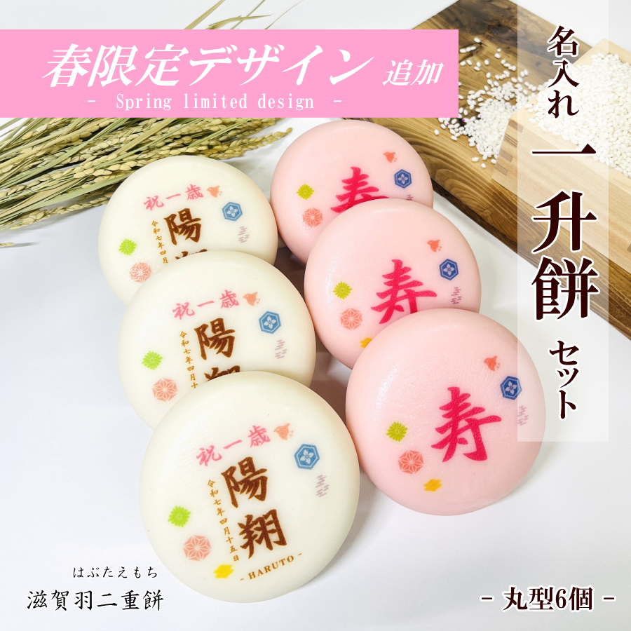 名入れ一升餅セット【丸型6個】★最高級の滋賀羽二重もちを使用★1歳お誕生日(御祝)★背負い餅・一生餅★名前入れ無料★米
