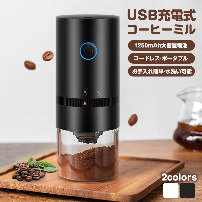 商品名:コーヒーミル 電動 アウトドア USB充電式 ポータブル 電動式 コードレス 極細挽き 粗挽き 調節可能 持ち運び オフィス 簡単 手軽 コーヒー豆 職場 大容量 お手入れ簡単 水洗い可能 屋外 コーヒーグラインダー 携帯便利 コンパクト 小型