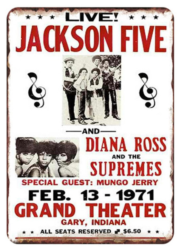 ジャクソン5とダイアナ・ロス 1971年コンサートポスター 歌手 アメリカ雑貨★レトロ調★ブリキ看板/飾り/バー/レストラン/カフェ 20x30cm