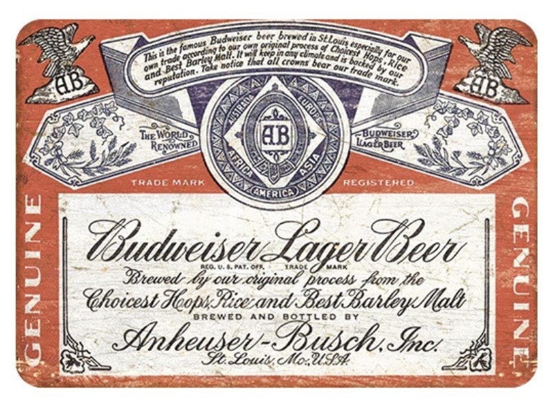 バドワイザー Budweiser アメリカビール★アメリカ雑貨 レトロ調 ブリキ看板 /飾り/バー/レストラン/カフェ/喫茶店 インテリア 20x30cm