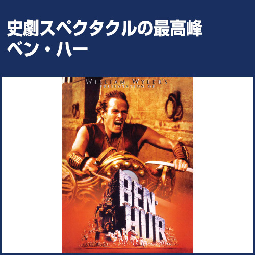 ユダヤの都エルサレム。豪族の息子ベン・ハーは反逆罪に問われ奴隷として軍船に送り込まれるが、やがてローマ屈指の剣闘士に成長。生き別れた母と妹の仇を討つため、宿敵メッサラとの対決、大戦車競走に挑む。史上最多、アカデミー賞11部門受賞。