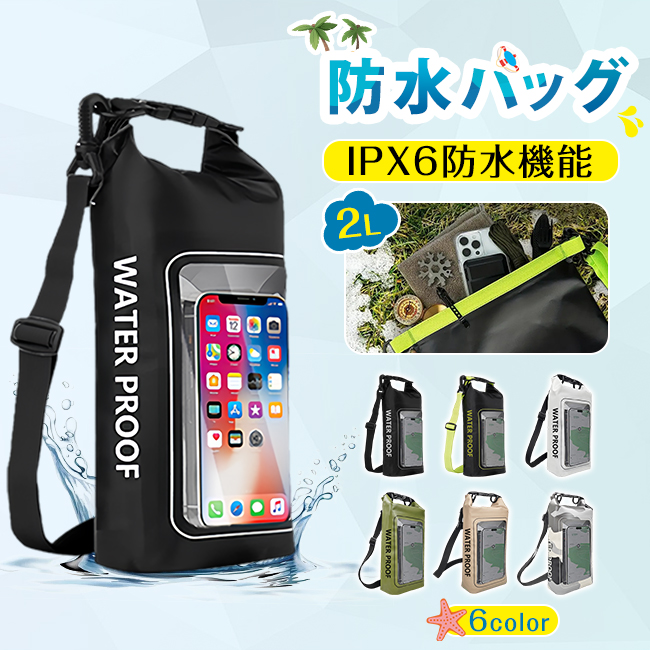 【新品開催10%off】ドライバッグ 防水バッグ 海 ショルダー ストラップ付き 釣り スマホ 携帯 IPX6防水 防水ポーチ 防水カバー 肩掛け 爆買