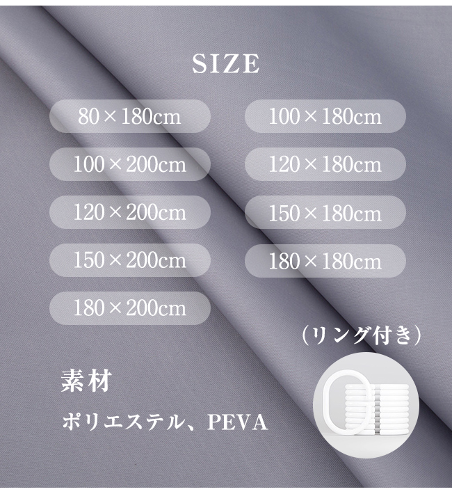 【新品開催10%off】シャワーカーテン 防水 防カビ おしゃれ リング付き 撥水 シンプル バス カーテン 浴室 脱衣所 バスルーム お風呂 仕切り 浴室カーテン 爆買