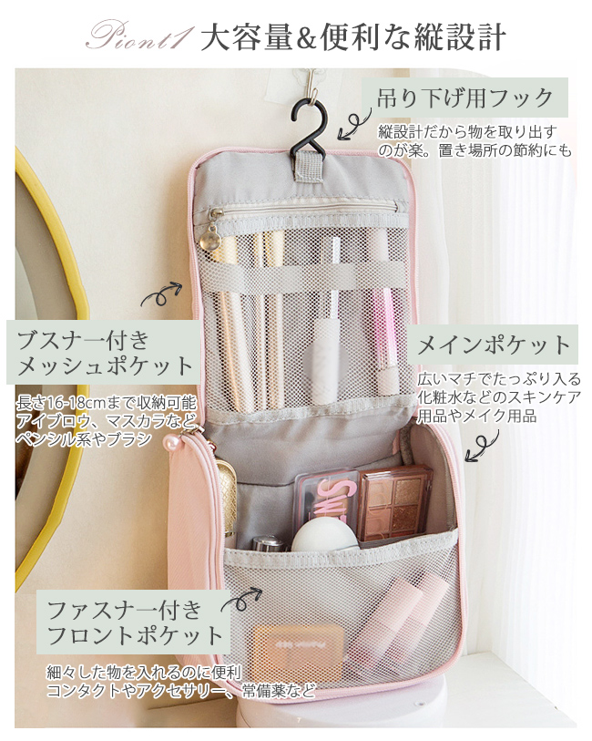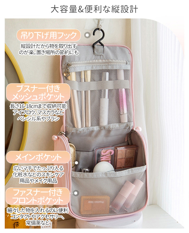【短納期・新品開催10%off】メイクポーチ 化粧ポーチ コスメポーチ 大容量 トラベルポーチ 吊り下げ 小物入れ 旅行用 たっぷり収納 自立 マチあり 縦型 爆買