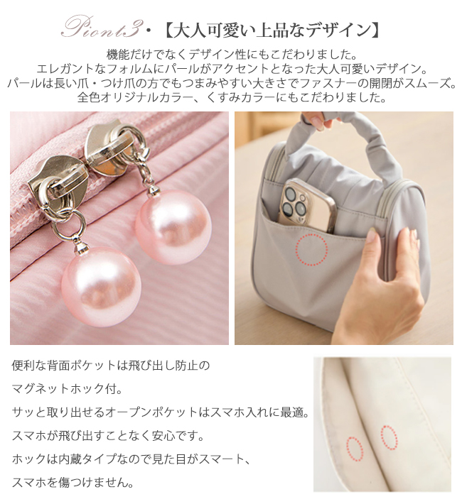 ・大容量&便利な縦設計、立てる収納ですっきり、2個所のポケットにそれぞれ4つの仕切り付き