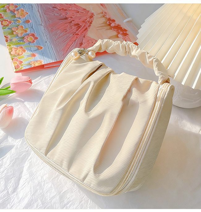 ・ソフトな素材で、なめらかな肌触り。シワ加工の持ち手で、快適にお持ちいただけます。