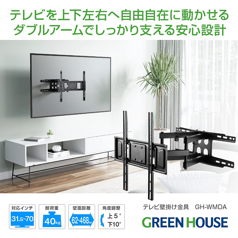 薄型液晶テレビを壁掛けしておしゃれに収納できるテレビ壁掛金具です。