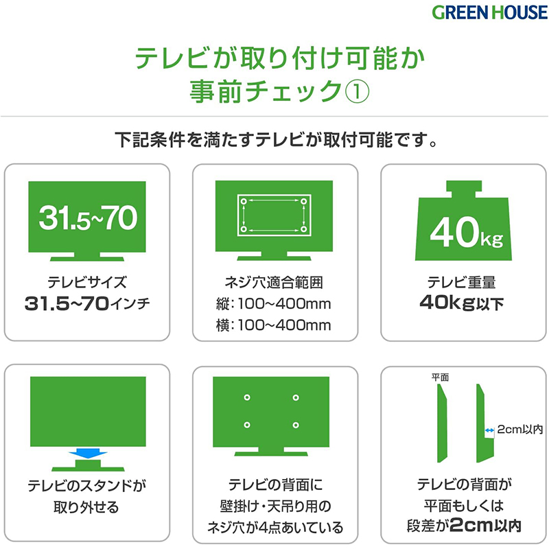 テレビと金具の重量を支えられる強度の下地が入った(間柱や補強板)壁であればお取付可能です。