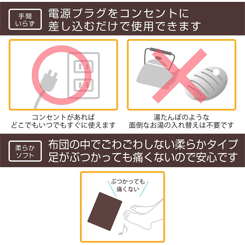 ●コンセントにつなぐだけで、一晩中足元ポカポカ