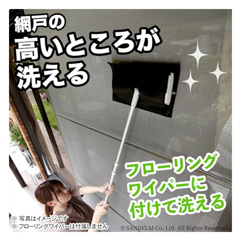 フローリングワイパーに取り付けて、網戸の高い所のお掃除もラクラク。