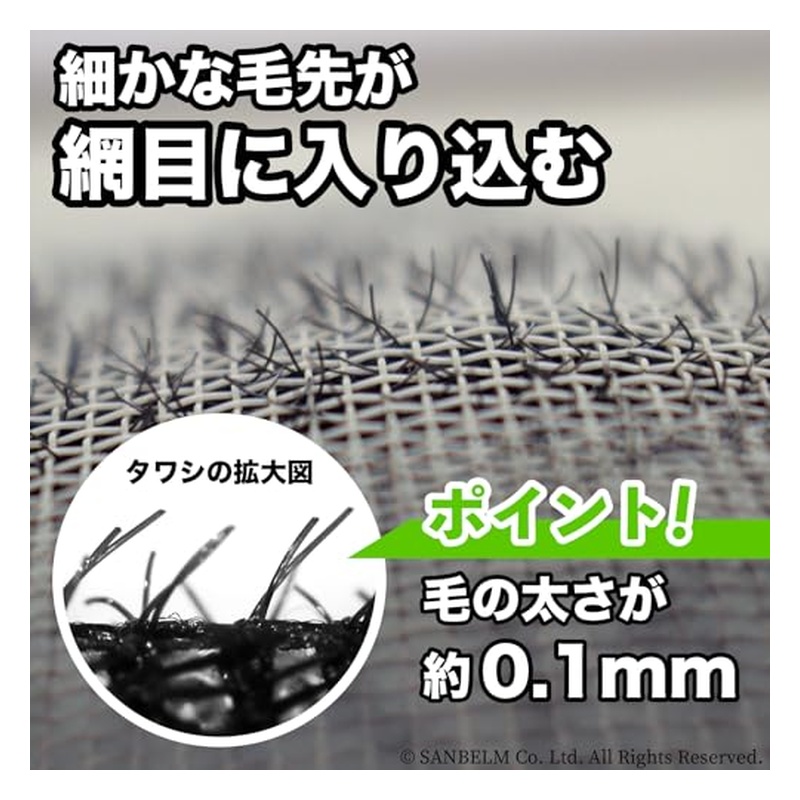約0.1mmの毛細糸が網戸の網目にフィットして汚れをかき出します。