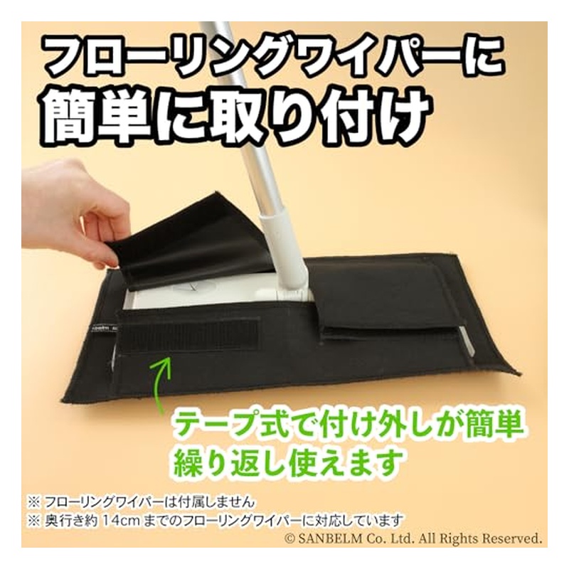 ●フローリングワイパーは付属していません。お手持ちのフローリングワイパーに取り付けてお使いください。(対応フローリングワイパー=短辺幅14cmまで)