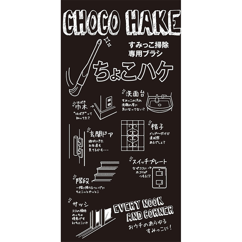 階段の隅、サッシ、玄関のドア、格子、や巾木などの気になるホコリや汚れをササッとお掃除できる便利な「ハケ」。