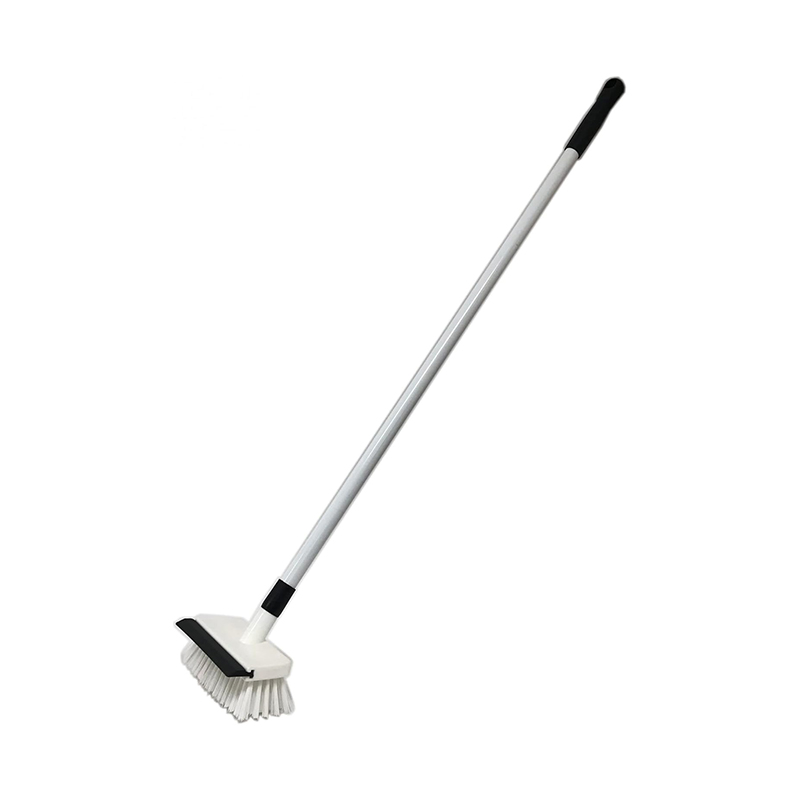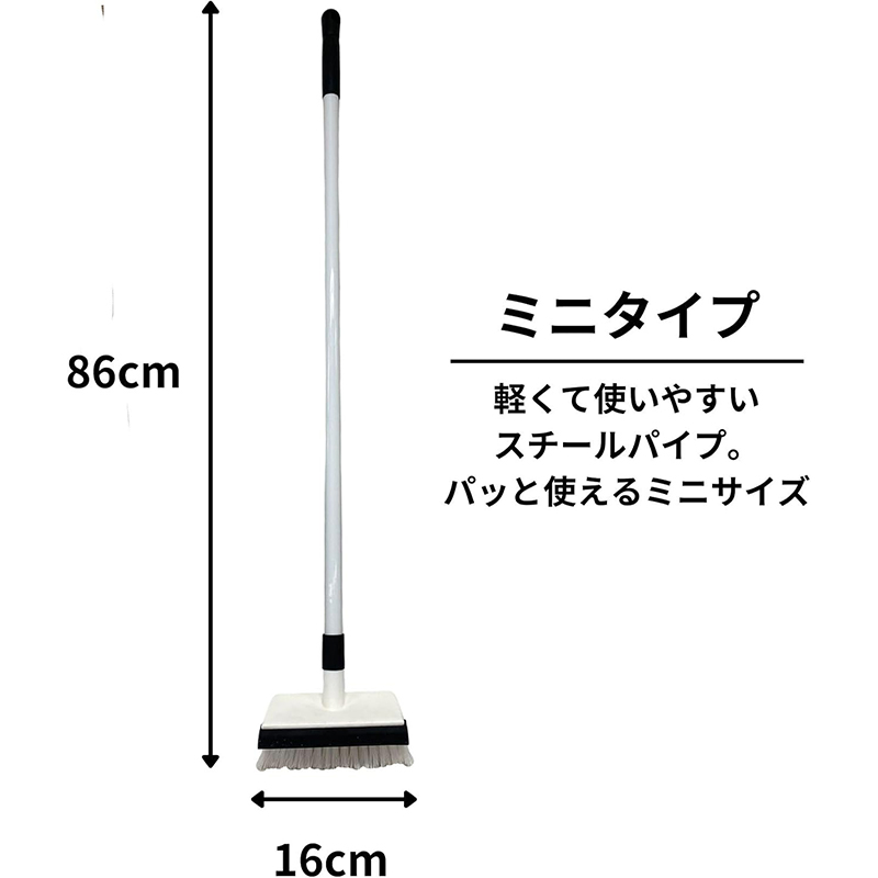 便利な水切りワイパー付きのデッキブラシ。軽くて使いやすいスチールパイプ。パッと使えるミニサイズ。