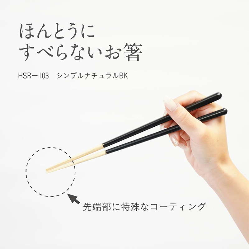<藤栄 箸職人が作る ほんとうにすべらないお箸 大人用 23cm シンプルナチュラル BK 食洗機対応 日本製 HSR-103>