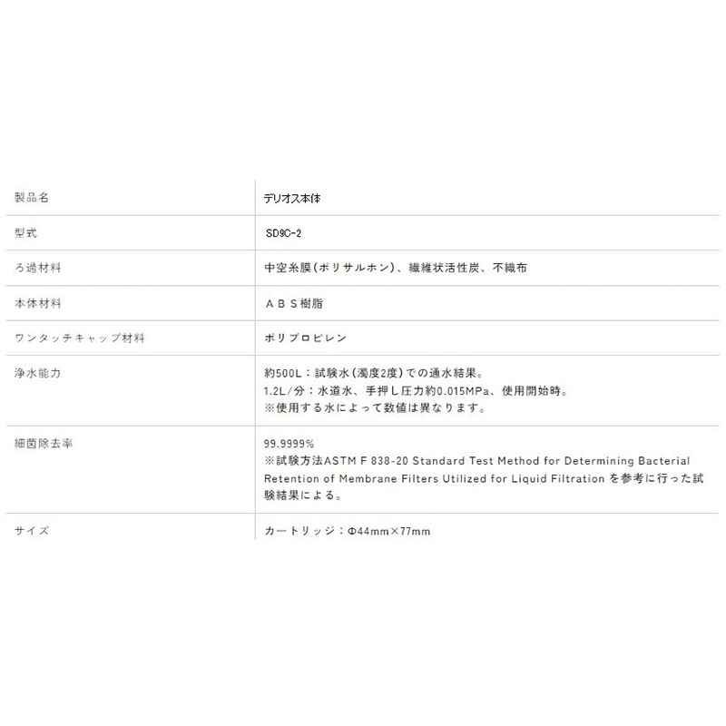 細菌除去率:99.9999% ※試験方法ASTM F 838-20 Standard Test Method for Determining Bacterial Retention of Membrane Filters Utilized for Liquid Filtration を参考に行った試験結果による。