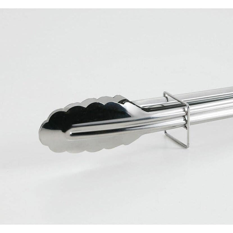 収納ストッパーで固定すると、トング先端が卓上に付かず置けます。ステンレス製で衛生的。
