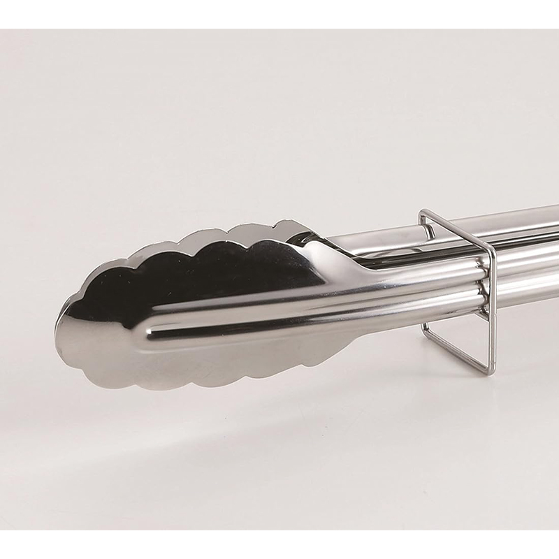 収納ストッパーで固定すると、トング先端が卓上に付かず置けます。ステンレス製で衛生的。