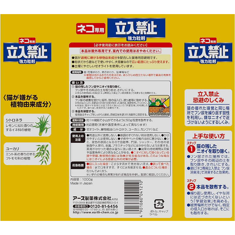 <アース製薬 ネコ専用 立入禁止 強力粒剤 1000g>
