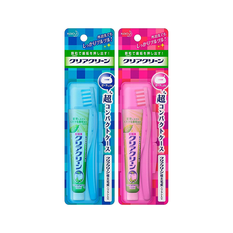 携帯しやすいクリアクリーンの歯磨きセット。ポーチに入る超コンパクトケース。学校・オフィス・旅行に。