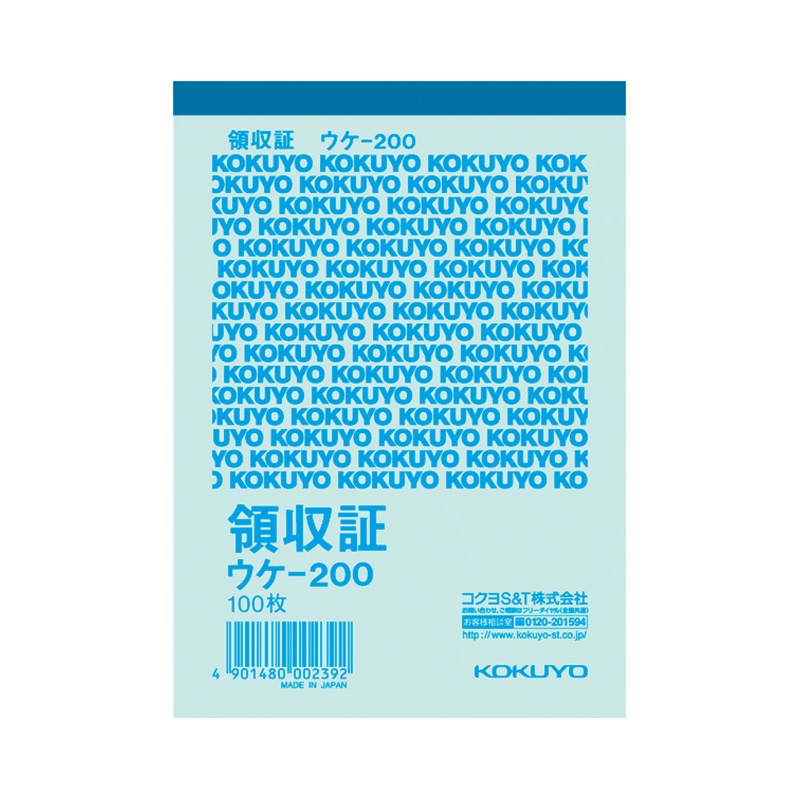 コクヨ 簡易領収証 B7タテ型 ヨコ書 一色刷り 100枚 ウケ-200 メール便対応(6個まで) 4901480002392