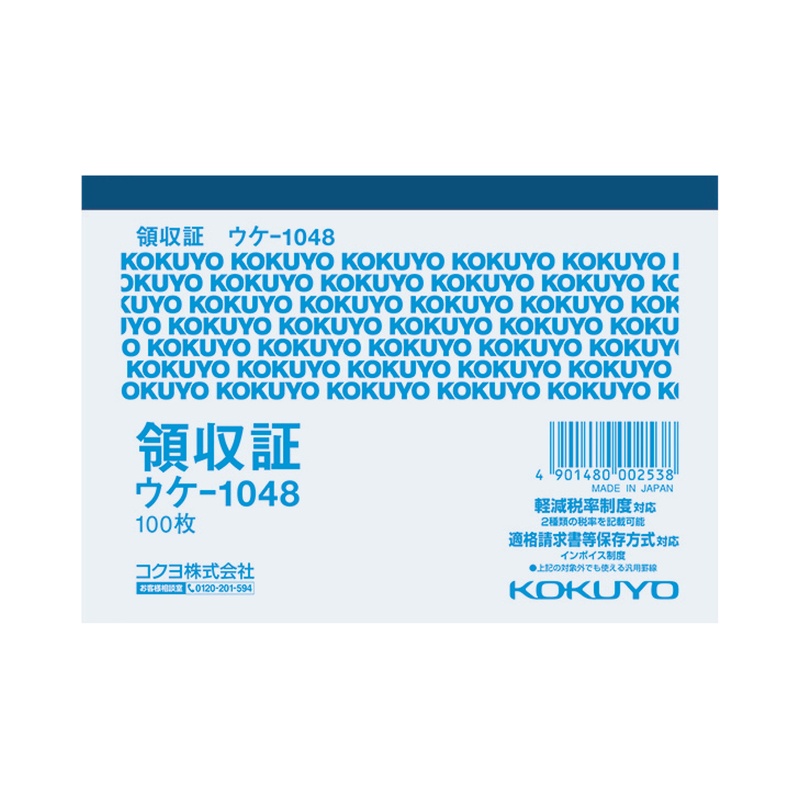 コクヨ 領収証 B7ヨコ型 ヨコ書き 一色刷り 100枚入り ウケ-1048 メール便対応(6個まで) 4901480002538