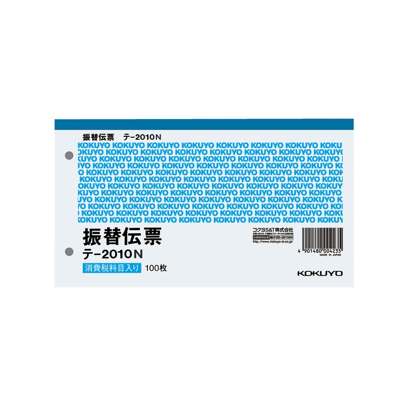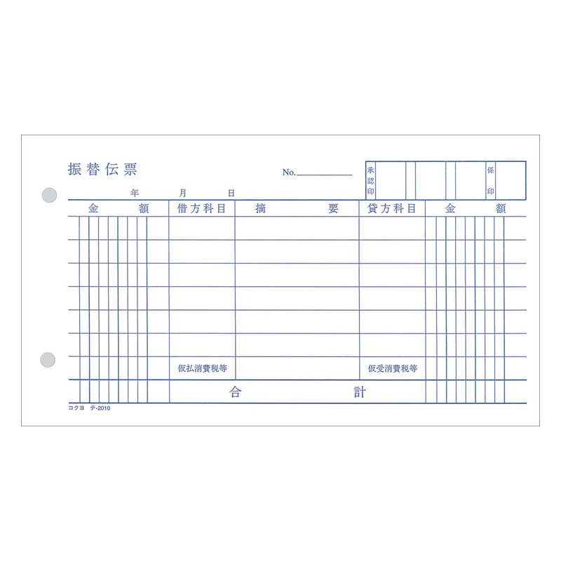 コクヨ 振替伝票 別寸ヨコ型 白上質紙 100枚入り テ-2010N メール便対応(4個まで) 4901480004235