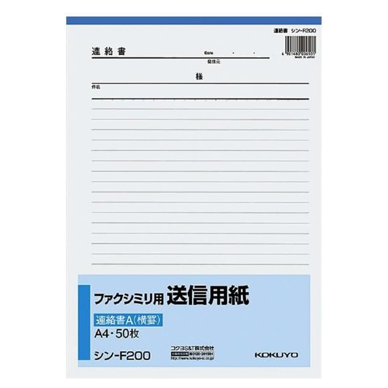 KOKUYO ファクシミリ用 送信用紙 A4 50枚 シン-F200 メール便対応(2個まで) 4901480006505