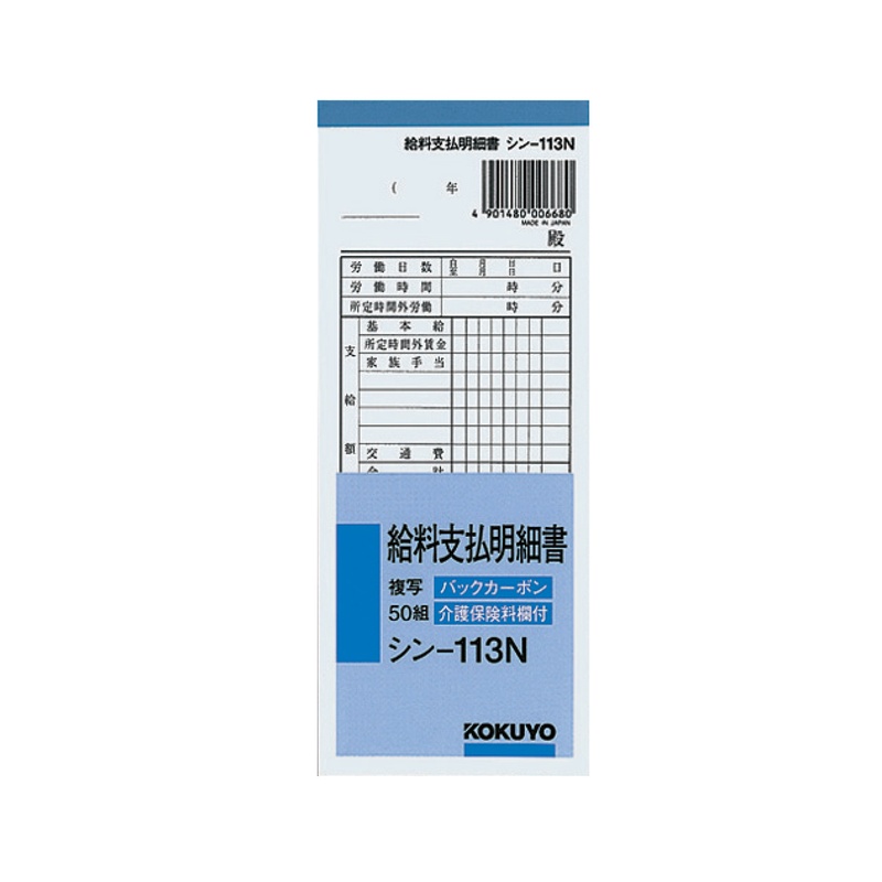 コクヨ BC複写 給料支払明細書 50組 シン-113N メール便対応(6個まで) 4901480006680