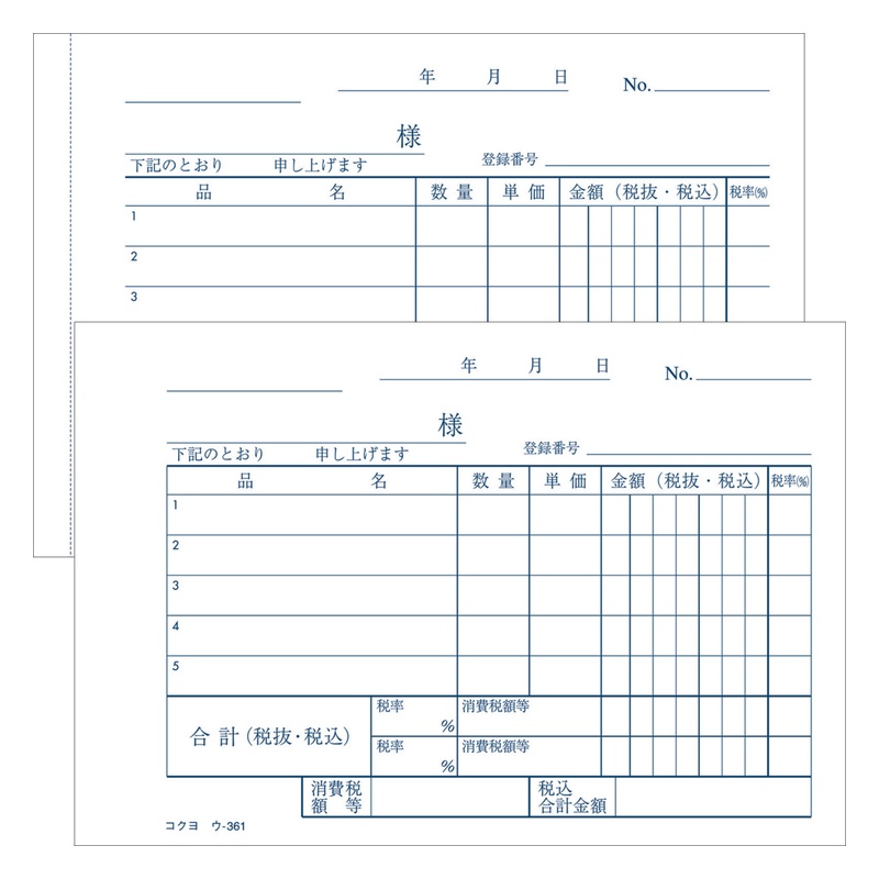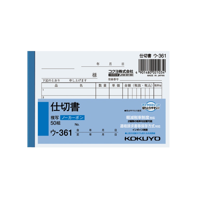 コクヨ NC複写簿 ノーカーボン 仕切書 B7ヨコ型 5行 50組 ウ-361 メール便対応(6個まで) 4901480021034