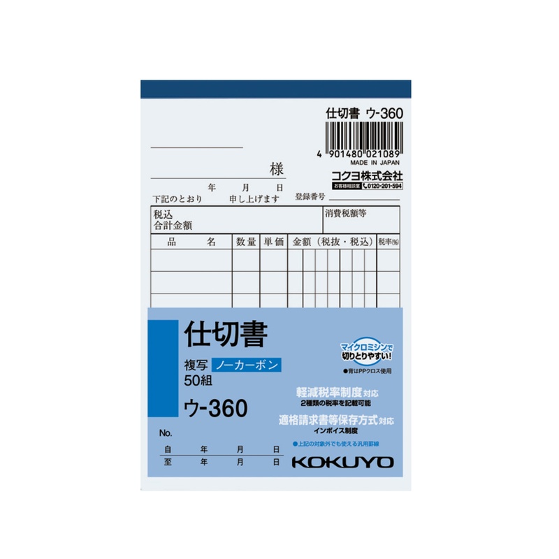 コクヨ NC複写簿 ノーカーボン 仕切書 B7タテ型 8行 50組 ウ-360 メール便対応(6個まで) 4901480021089