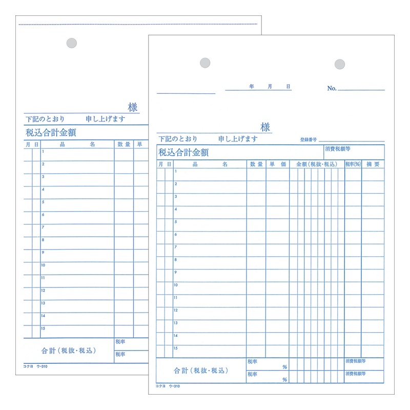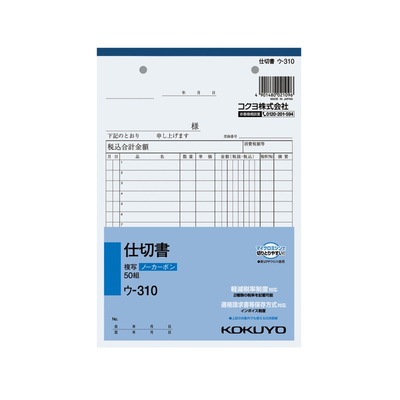 コクヨ NC複写簿 ノーカーボン 仕切書 A5タテ型 15行 50組 ウ-310 メール便対応(2個まで) 4901480021096