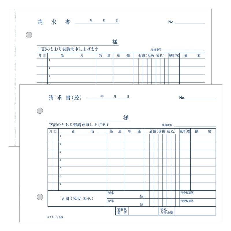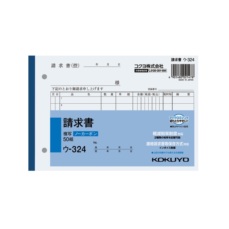 コクヨ NC複写簿 ノーカーボン 請求書 B6ヨコ型 7行 50組 ウ-324 メール便対応(4個まで) 4901480021478