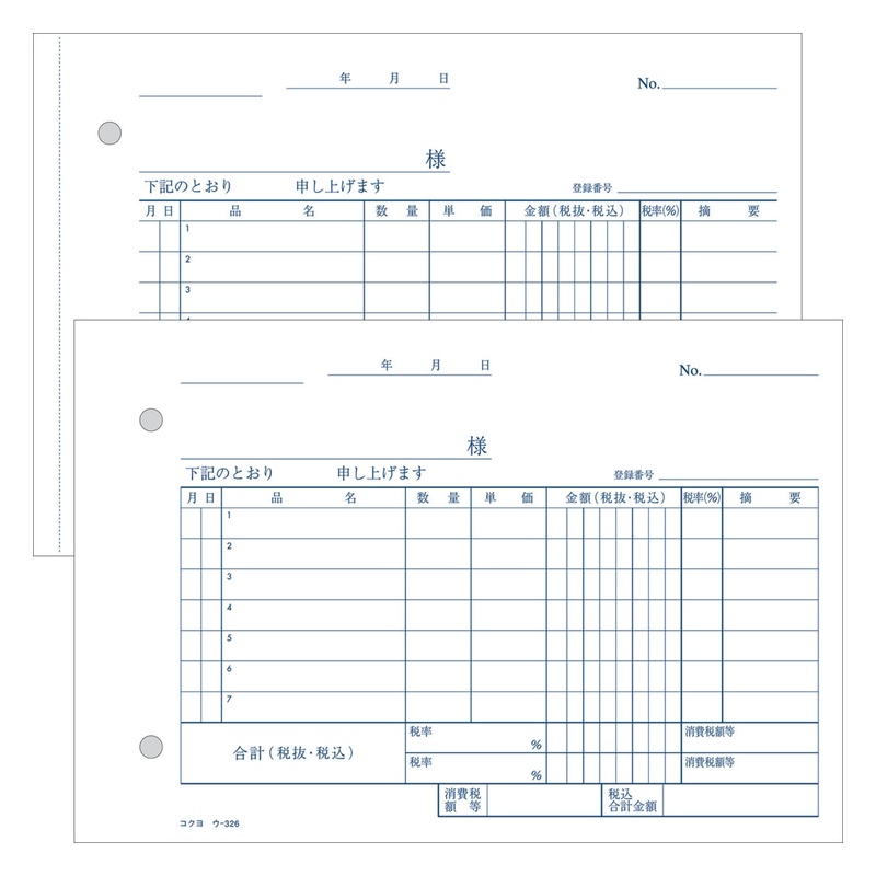 コクヨ NC複写簿 ノーカーボン 仕切書 B6ヨコ型 7行 50組 ウ-326 メール便対応(4個まで) 4901480021485