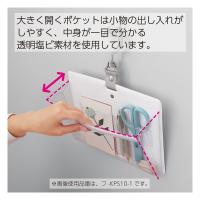 ●大きく開く透明ポケット/小物の出し入れがしやすく、中身が一目で分かる透明塩ビ素材を使用しています。