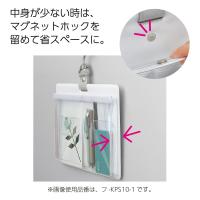 ●マグネットホック/中身が少ないときはポケット入り口のマグネットホックを留めて省スペースで使うことができます。