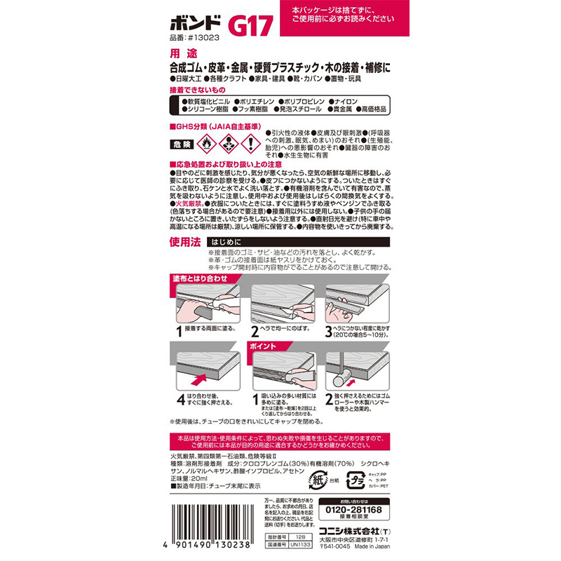 コニシ ボンド G17 20ml 接着剤 合成ゴム 皮革 金属 硬質プラスチック 木 速乾 強力 #13023 メール便対応(4個まで) 4901490130238