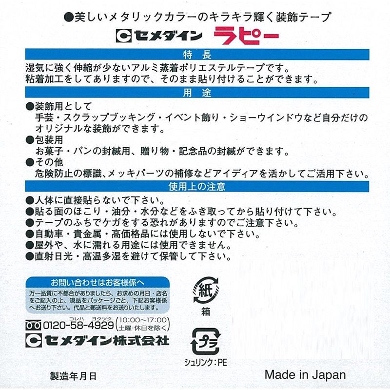 セメダイン 装飾テープ ラピー 金 0.05mm厚 18mm×8m メール便対応(6個まで) 4901761112468