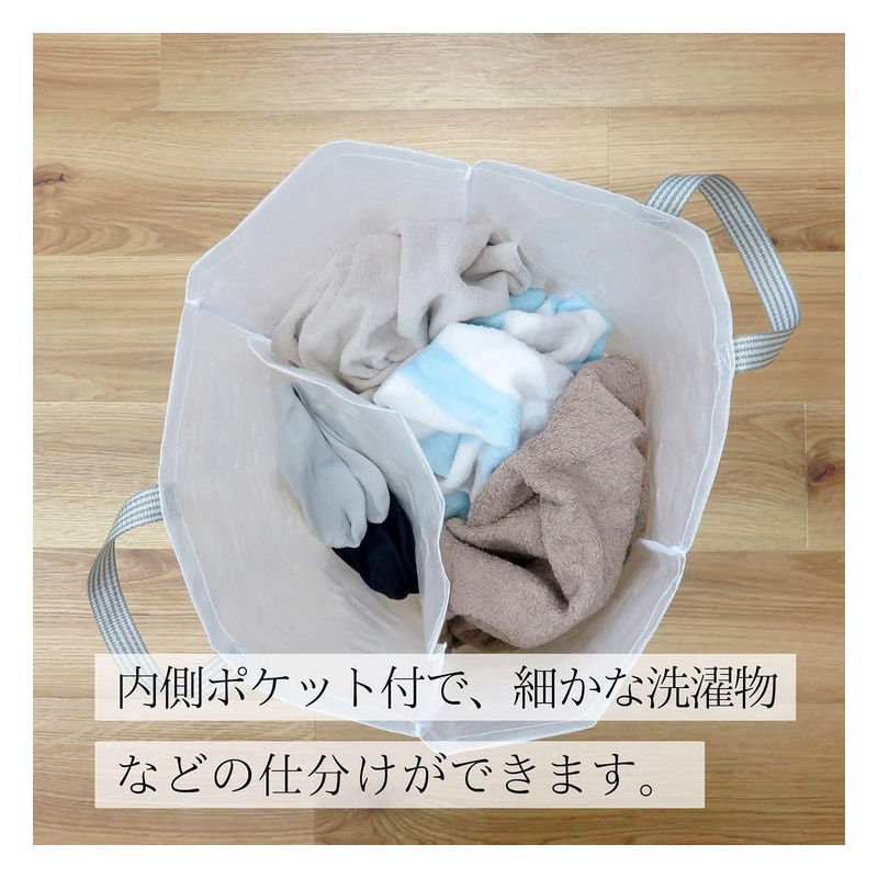 ●内側ポケット付きなので、細かい洗濯物などを仕分けできる ランドリーバスケット