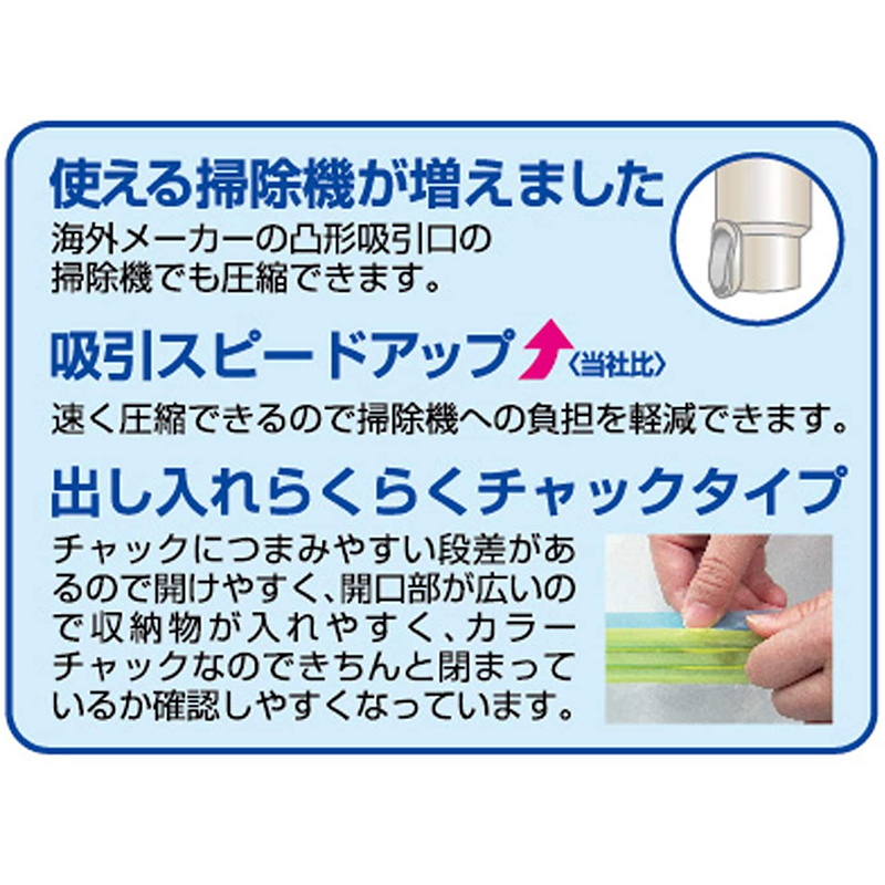 ・掃除機ノズルを離すとバルブが自動にロックするので手間なく簡単に圧縮できます。空気の逆戻りもありません。