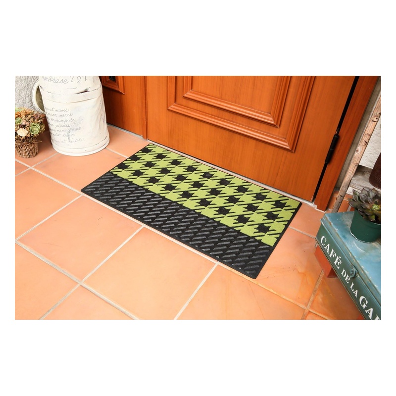 山崎産業 玄関マット 屋外用 マイプレジャー チェック ノルディック調 グリーン #3 約45×75cm 185740 4903180185740