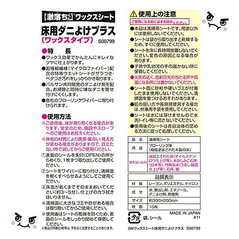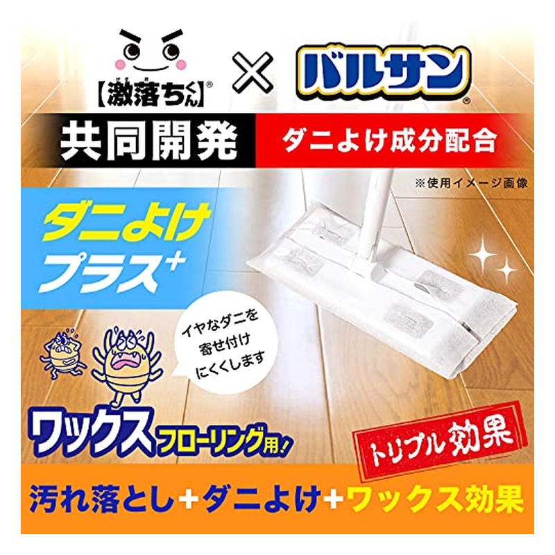 激落ちくんとバルサンの共同開発! ダニ除け成分配合のフローリング用ワックスシートです。