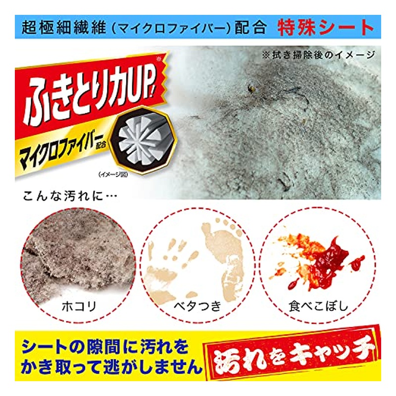 マイクロファイバー(超極細繊維)配合の特殊シートがほこりや皮脂汚れをしっかりかきとります。