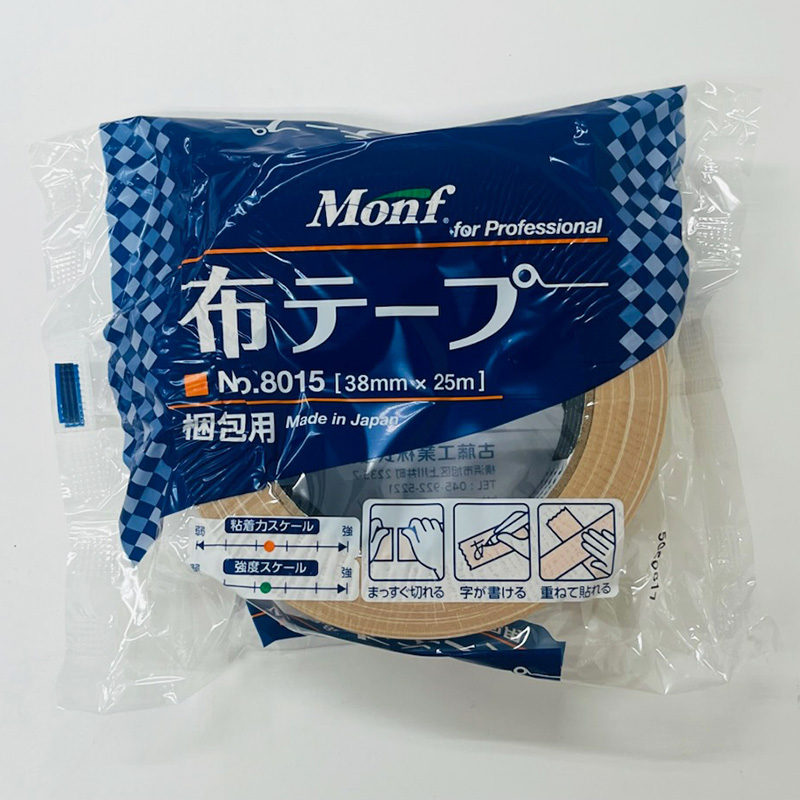 古藤工業 Monf 梱包用 布粘着テープ 黄土 38mm×25m 布テープ No.8015 4909622732503